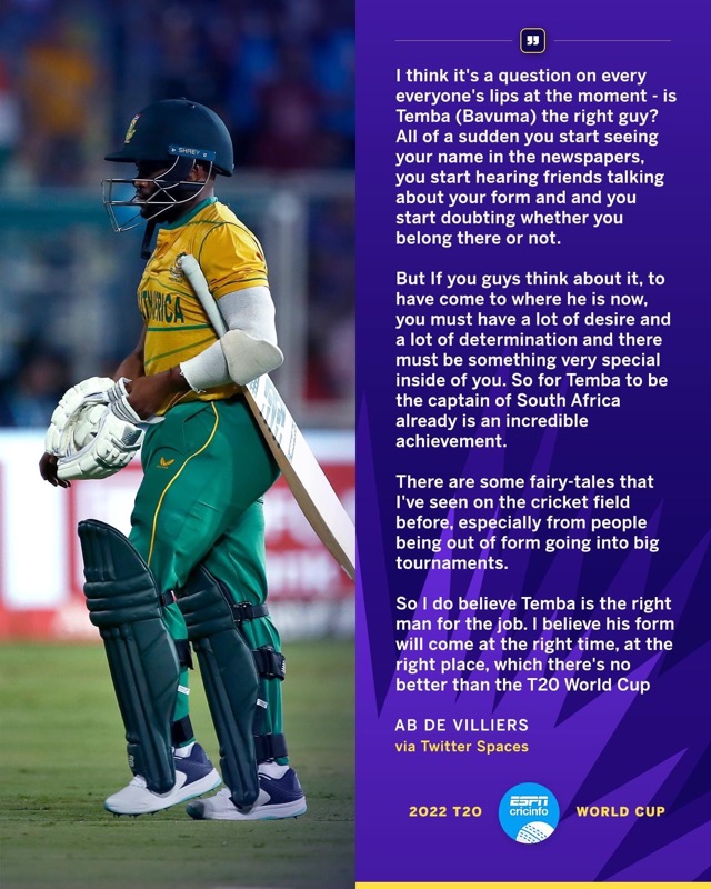 The point being that there is a target with respect to Black African (do not like the phrase) representation in the team...Rabada and Ngidi (when not injured) select themselves in the bowling but difficult with the batting in that only Bavuma and Zondo have had some performances to merit consideration...and by making Bavuma captain, they have to find a place in the team for him nothwithstanding form and overall record...