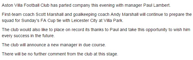Lambert sacked by Villa