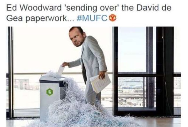 David De Gea's £29m move from Manchester United to Real Madrid has collapsed because the necessary paperwork was not submitted in time.