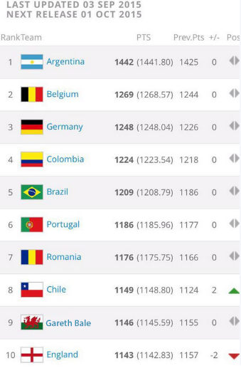 I find it hard to believe that Spain are not in the top 10 even if they have performed below standards in the last 2 years they are better than half those top 10 teams...