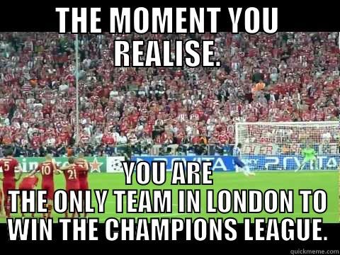 rather be in it every year than once in awhile like the great team from Chavland. Yes you won it and lucky were you. Our keeper saved a penalty in extra time to take it into penalties so you should thank us. You lost to United in a final, how crap must that feel :lol: with your so called mr chelsea sending his spot kick into the city centre of Moscow a kick that would have won it.