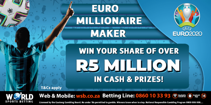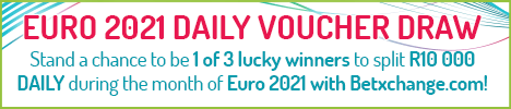 - A share of R10 000-00 will be up for grabs on every Euro 2021 match day- first winners will be credited on 12 June 2021 for matches on first match day, and so on and so forth for all matches ahead.