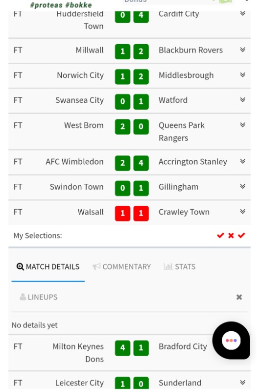 I came close yesterday for a big payout. It paid 50k but if Walsall won it would have paid around 35k to 40k. In fact Walsall scored late on about 88 minute but Crawley Town equalised in the 94th minute of stoppage time. Anyway collected R1300 consolation payouts.