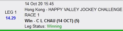 Did you have a small bet on Jerry? I am needing Chai to win the last for a very decent payday... have already pocketed 5 times my stake. Took swingers with Insayshable and a small cover win bet at 20/1
