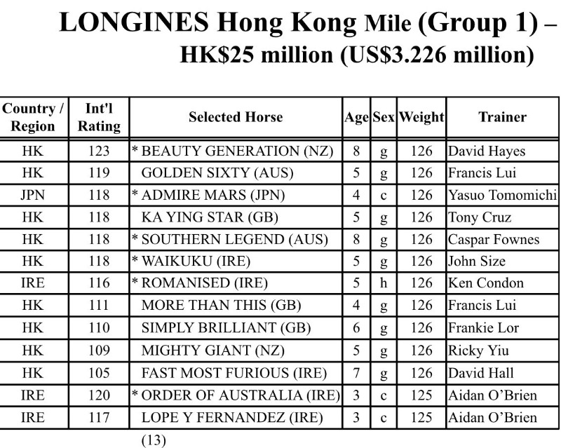 Beauty Generation and Golden Sixty have dominated in Hong Kong in recent seasons and they are on course for the Hong Kong Mile.