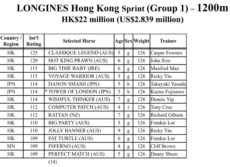 The Ken Condon-trained Romanised adds to the European challenge, while last year's runner-up Hot King Prawn could go head-to-head with Classique Legend in a competitive Hong Kong Sprint.