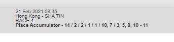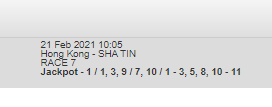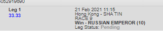 Tabgold not updating anything still stuck on HK race 3,but it would be interesting to know the difference in Bipot tickets between Purton's mount running 2nd and the 80-1 horse that actually beat him on the line in race 9.