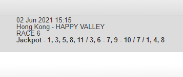 Re: HAPPY VALLEY 2 JUNE 2021