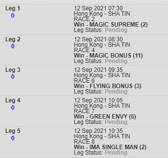 My best bet is Magic Supreme on 2nd race, should prove hard to run down especially if given a soft lead. At the time i placed the bets no odds were available..