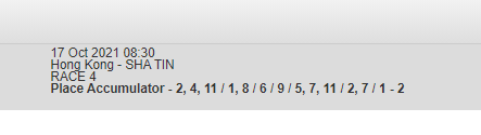 Sure to drift but it was paying 5.5 a few minutes ago,that's big money on the HK tote
