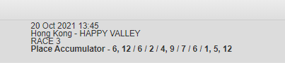 Re: HAPPY VALLEY 20 OCTOBER 2021