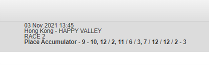 Today's card at HK was probably the worst I've seen in a while there. No standouts. Suffices to say all my bets were in the bin after a couple legs of each.