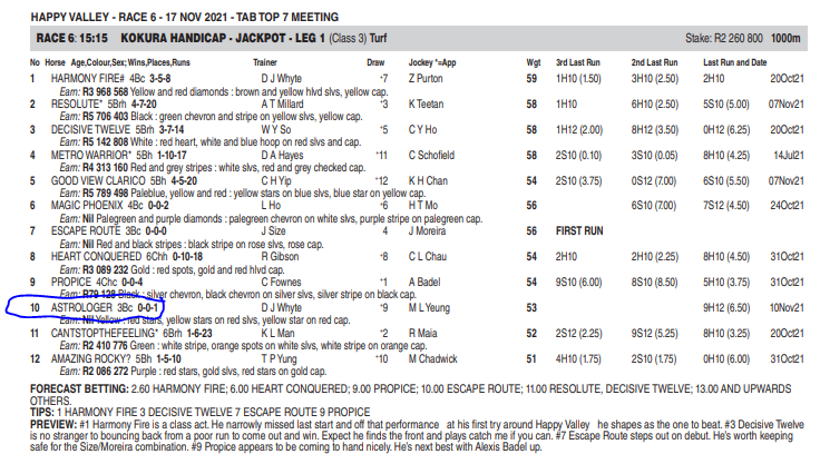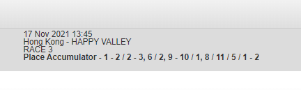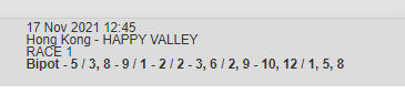 Re: HAPPY VALLEY 17 NOV 2021