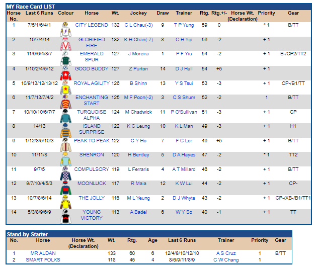 Below is an example of upcoming Shatin meeting, Mr Aldan and Mr Folks can gain a place on Sunday if any 2 of the horses are scratched.