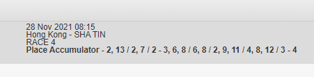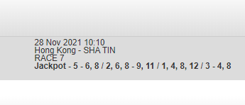 Re: SHA TIN SUN 28 NOV - Lyle is back