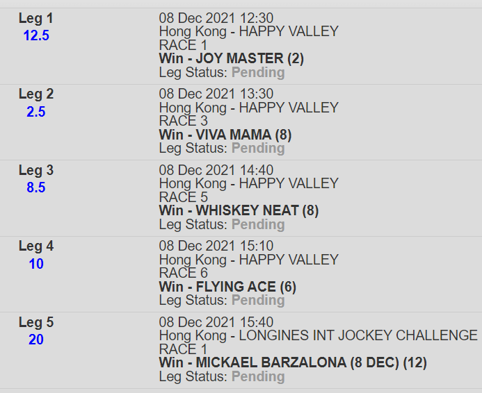 I have picked 1 winner from Mick on Whiskey Neat, so placed a small bet at 16/1, hope the other 3 rides he can place or notch another win. Whiskey Neat is my best bet today 9/1. Hope its my double too:)