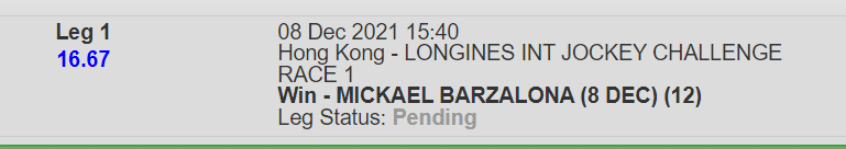 Three of Moreira’s mounts will break from gate two: Telecom Rocket (1st Leg), Red Brick Fighter (2nd Leg) and Red Majesty (3rd Leg), while Classic Posh steps away from gate five in the 4th Leg.