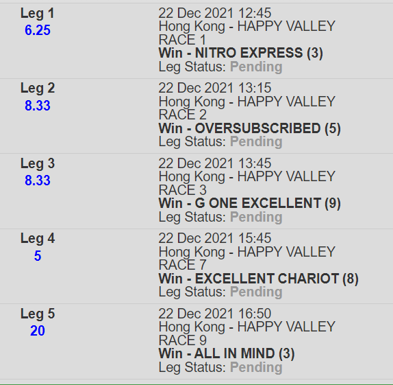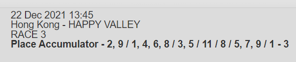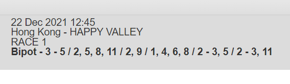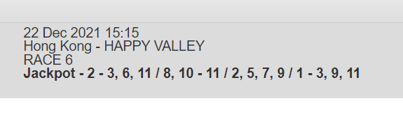 Re: HAPPY VALLEY 22 DEC 2021