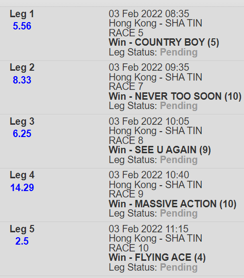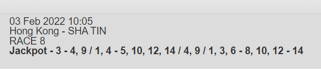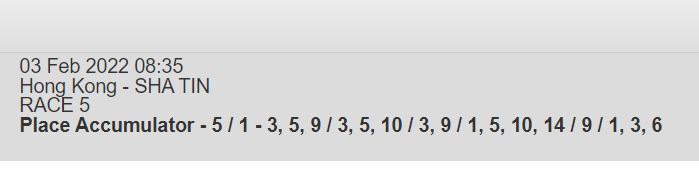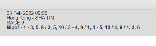 Re: SHA TIN 3 FEB 2022