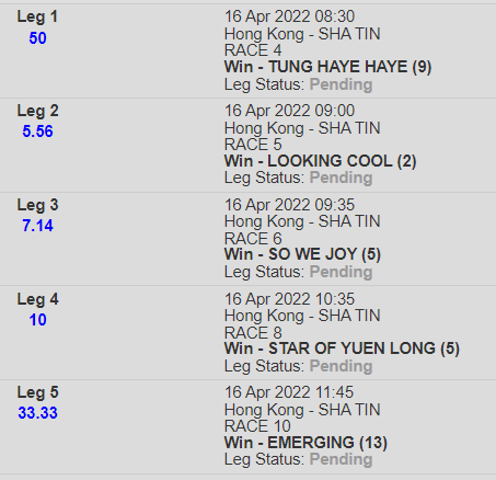 Race 8 5 Star Of Yuen Long 5/10/9/3