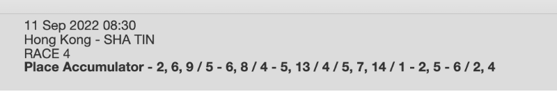 Well...Its been ages since ive done HK RACING. DOnt keep track of it anymore so im expecting a hectic day....Hopefully the above can help yall in someway. Goodluck to all👍🤞🏼🤞🏼🤞🏼