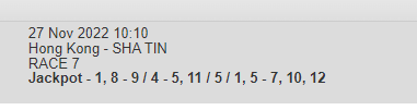 Was playing up behind the pens and started sweating so was always going to come under pressure the last 100m but too late for the exotics.