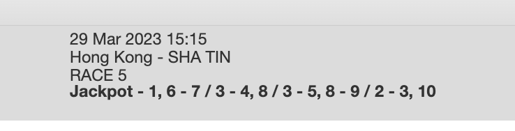 Re: SHATIN 29 MARCH 2023