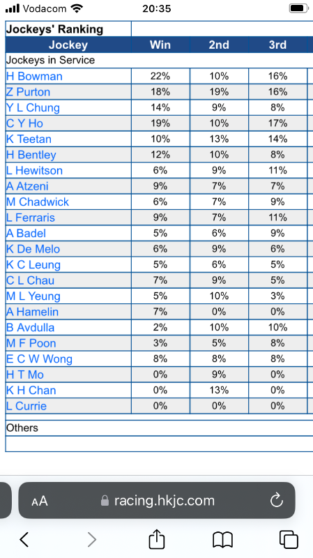 Out of the 15 jockeys that have at least ridden one favourite this season he stands in 8th place on % won.
