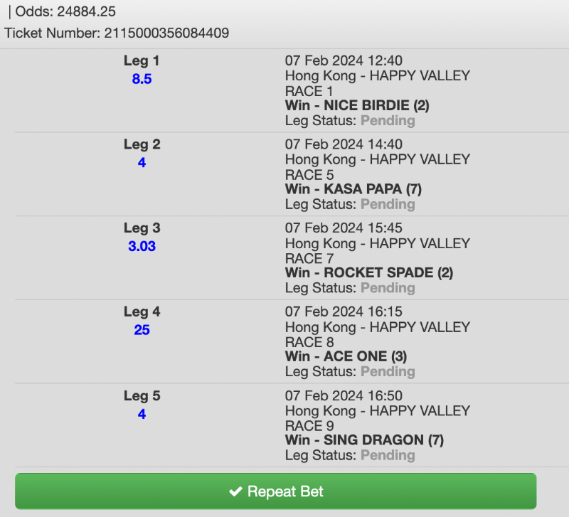 It looks like Jerry Chau has some decent rides throughout the card, the one I like most is Ace One on Race 8 priced 25/1. I will back him to win jockey challenge at 20/1. Lyle has good rides as well and the last on card should be hard to beat on his first run in Hong Kong.