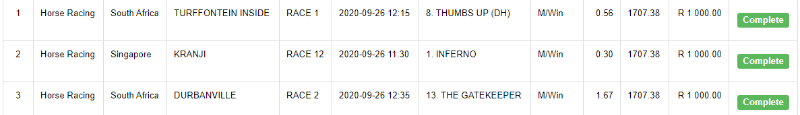I took a bet on the nose, 4/1 with The Gatekeeper and Thumbs Up. Hollywoodbets short changed me with 17/10 payout. THIEVES OF NOTE!