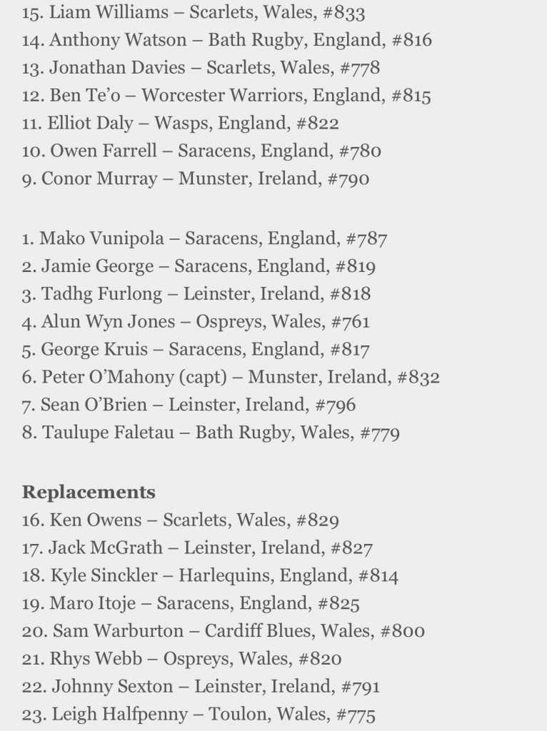 British and Irish Lions 41 players choosen