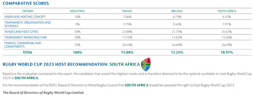 Bill Beaumont looked a bit shocked/grumpy when announcing France as the winner. In all honesty, as much as I would have loved us to host it, we have huge internal strife to address first.(Crime,corruption, infrastructure, education etc.)