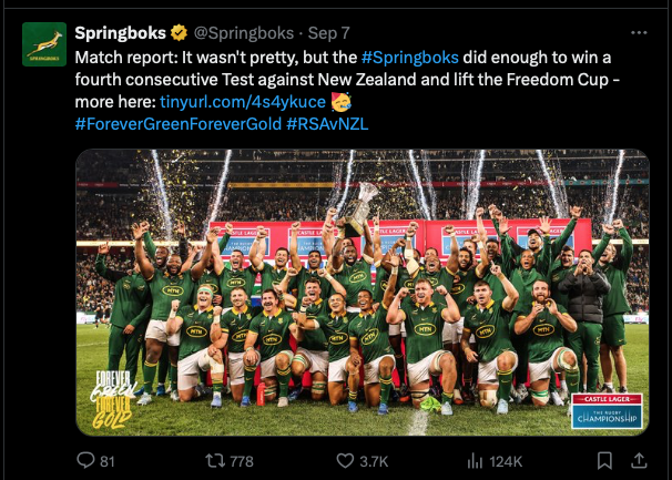 Pity Argentina kept getting players sent off however Boks were simply the best in the World 🌎
