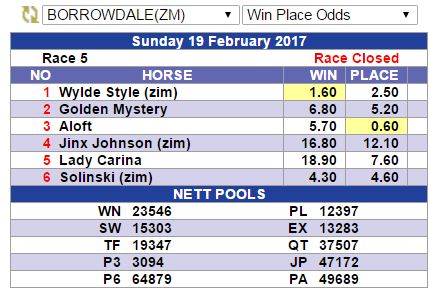 But Aloft came down to 0.60 a place and only 2 places available. About R2500 places was on Wylde Style.