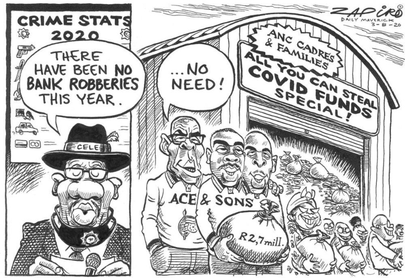 The corruption cases just keep coming to a head, 64 grand for 8 grand shacks, tents for hospital marked up by 190%.