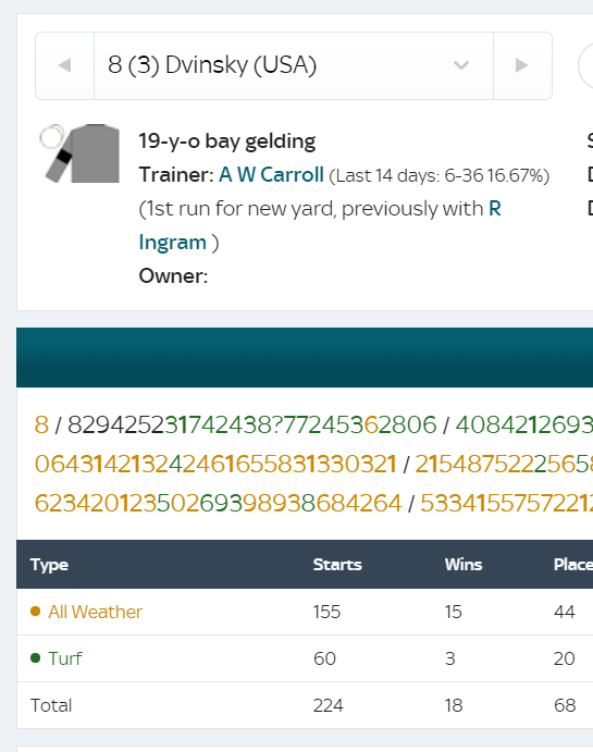 General Tufto had 218 races of which 144 were on the all weather with over 130 of those runs at Southwell alone
