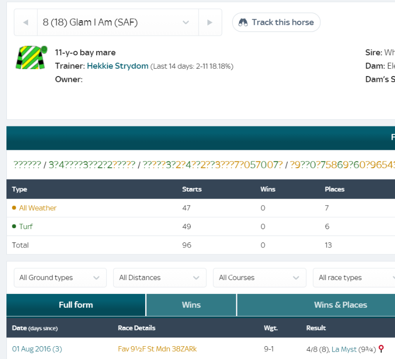 So longest losing streak could be Glam I am who raced between 2012 & 2016 with a whopping 96 runs without a win. Internationally, I think it is Quixall Crossett who ran 103 races without a win.