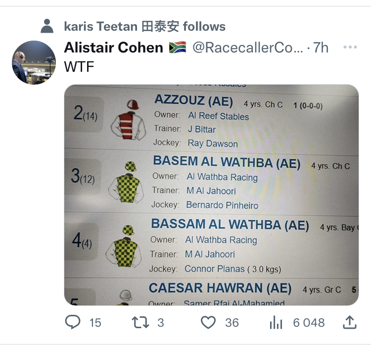 On a positive note from Dubai we have Meydan today and AWASEF runs