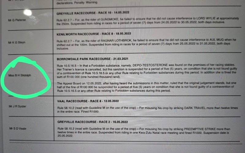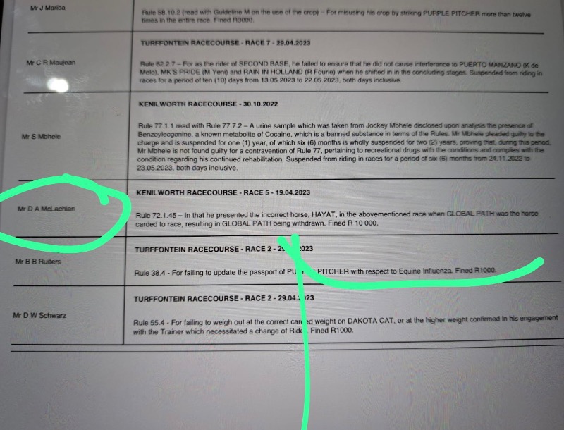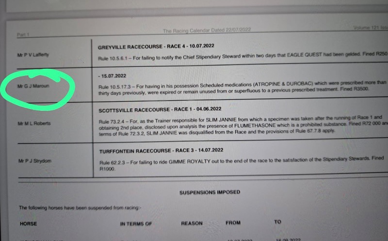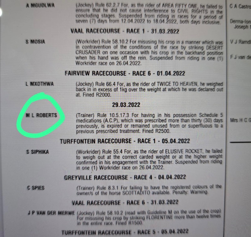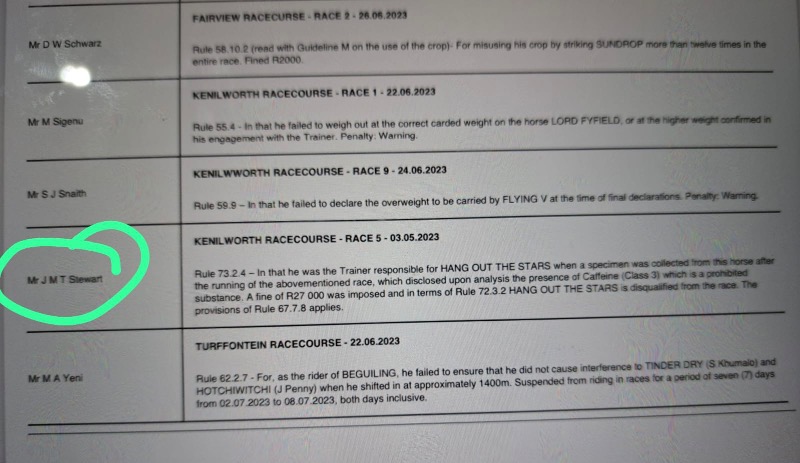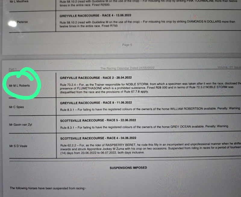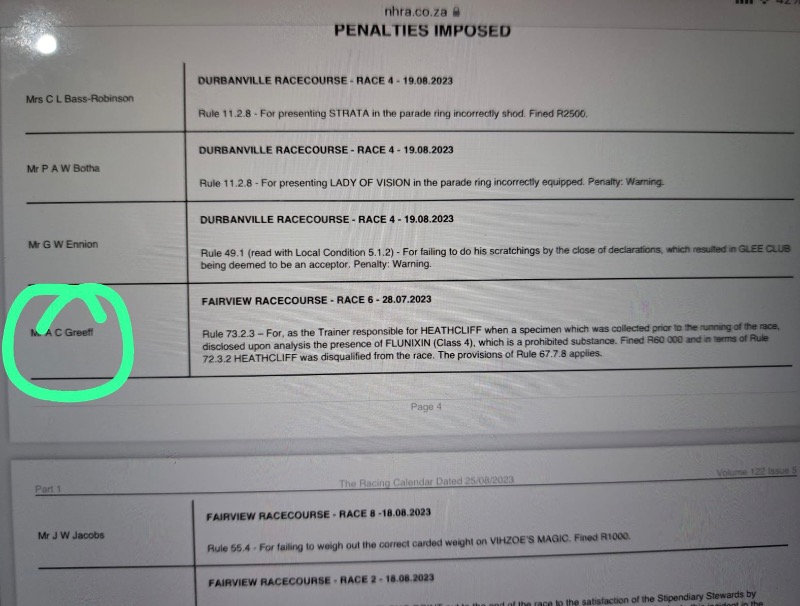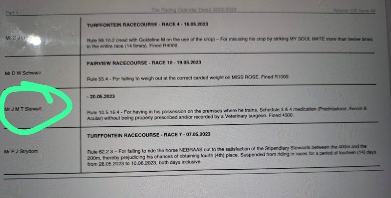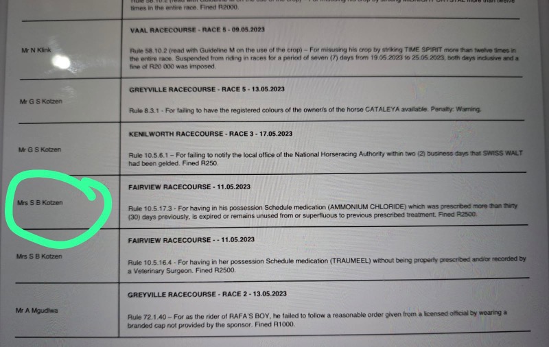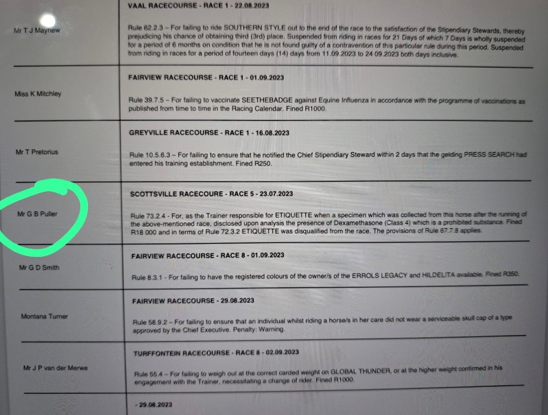 .....yes some seem to be very selective in going for a few......GVZ was a target here and so was DK and some Kimberley okes too.....so in all fairness either all infractions are reported.....or none at all.....but us punters have our hero's and chant and hold in high regard for those that deliver regardless of the methods they use to do so.....me I'm too much of an advocate of horse health wellness and cannot condone the shortcuts that illegal underhanded use of medication is able to produce better results....I blame the vets that were previously sanctioned by the Jockey Club to enable so many to cheat by smoothly helping get horses sound by means of these short cuts....it needs to be investigated and indoctrinated as a zero policy instead of the now NHRA using it as an income.....:whistle: