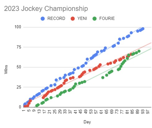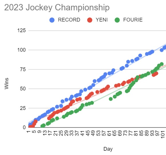 I am hoping Muzi wins the Jockey title but not going to happen if Fourie sticks to this level of results