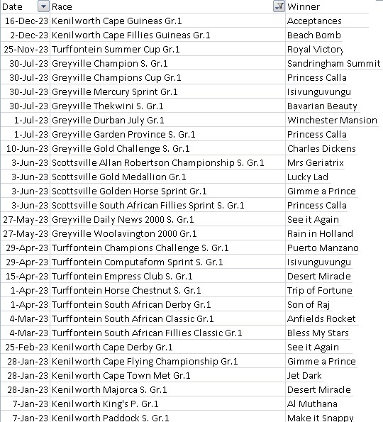 Re: Drakenstein Stud 6 grade 1 winners in 2023 6 different horse.