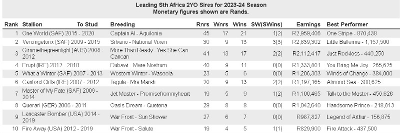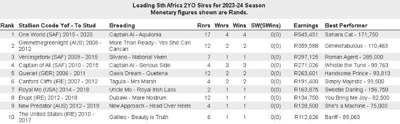 Two year old sires 2023/2024