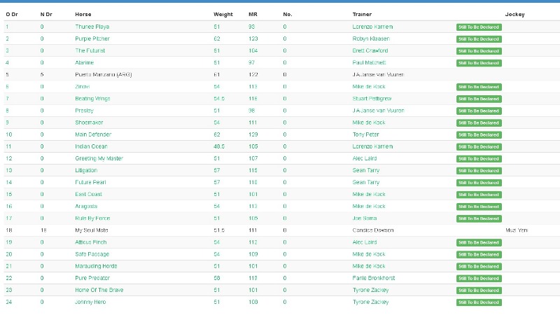 At approximately the 400m, MAIN DEFENDER (G Lerena) and JOKER MAN (C Habib) came together and bumped on a number of occasions when awkwardly placed between BARBARESCO (R Danielson), which was directed outwards away from the heels of GIMMEANOTHERCHANCE (C Zackey) and GRAND CRESCENDO (K A Brewer), which hung in badly from the 500m. This incident led to JOKER MAN (C Habib) being squeezed out and GRAND CRESCENDO (K A Brewer) being unbalanced and having its hindquarters turned outwards. When tacking into account GRAND CRESCENDO’S (K A Brewer) recent history of hanging in races, Trainer C Dawson was advised to take the necessary corrective measures to improve this gelding’s racing manners.