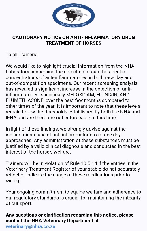 CAUTIONARY NOTICE ON ANTI-INFLAMMATORY DRUG TREATMENT OF HORSES