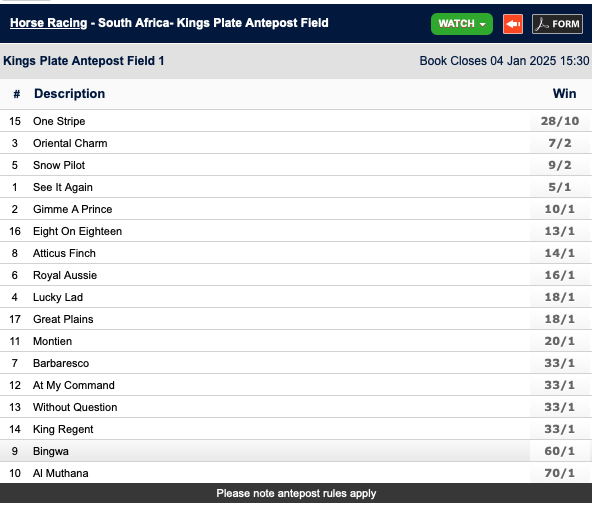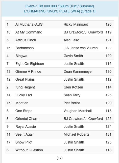Re: L'ORMARINS KING'S PLATE ENTRIES