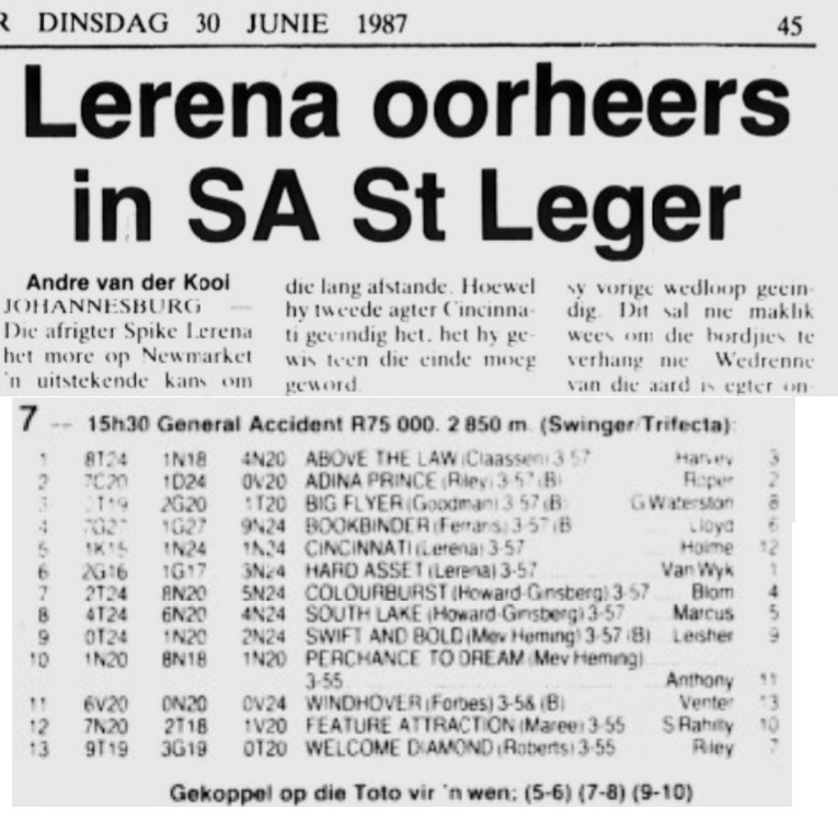 1 year 3 months ago1987 St Leger 2850 meters. was always one of my fav Gauteng races growing up. That and the Cesarewitch over 3200 meters