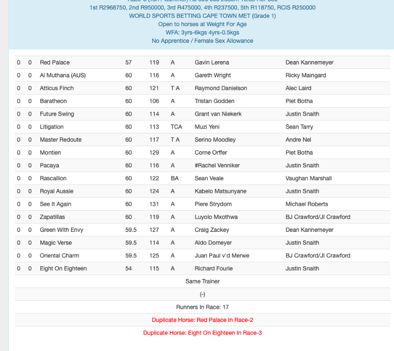 Re: WORLD SPORTS BETTING CAPE TOWN MET FINAL FIELD THREAD