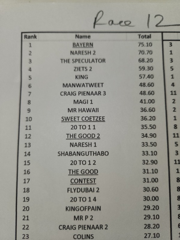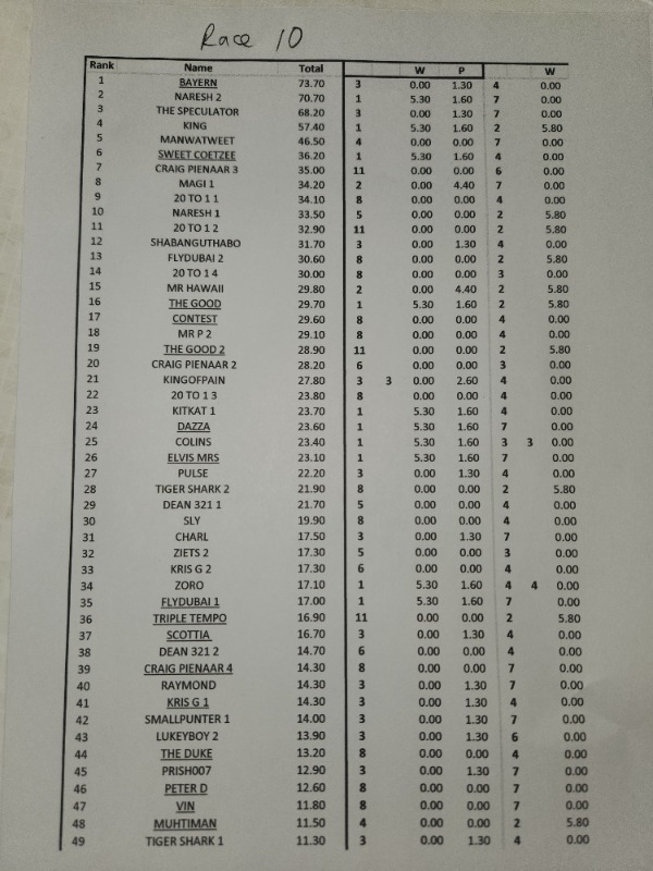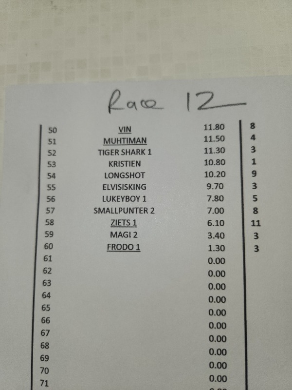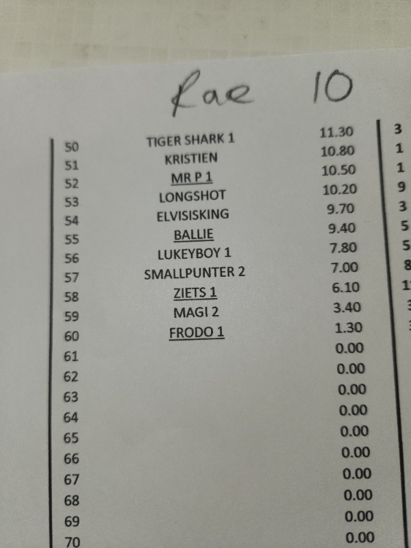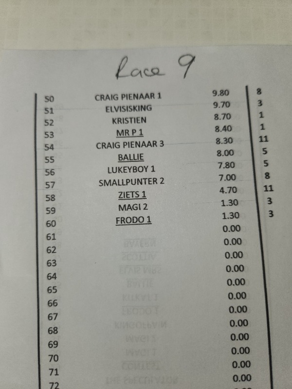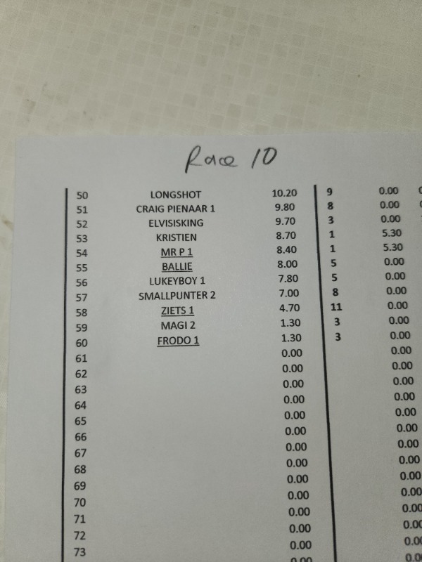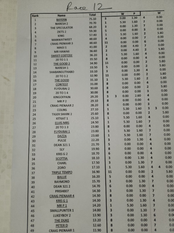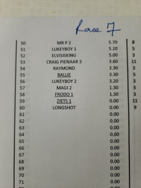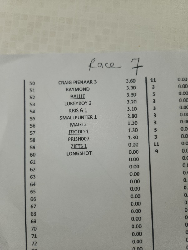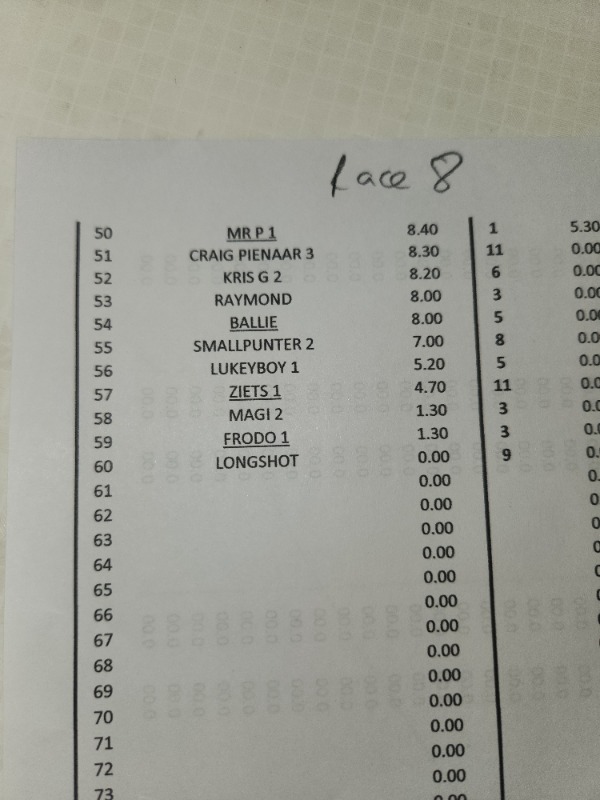SPARE A THOUGHT FOR ZIETSMAN...................... R 12 HE FINDS A 50 / 1 WINNER ON THE BOOKS.