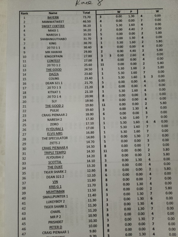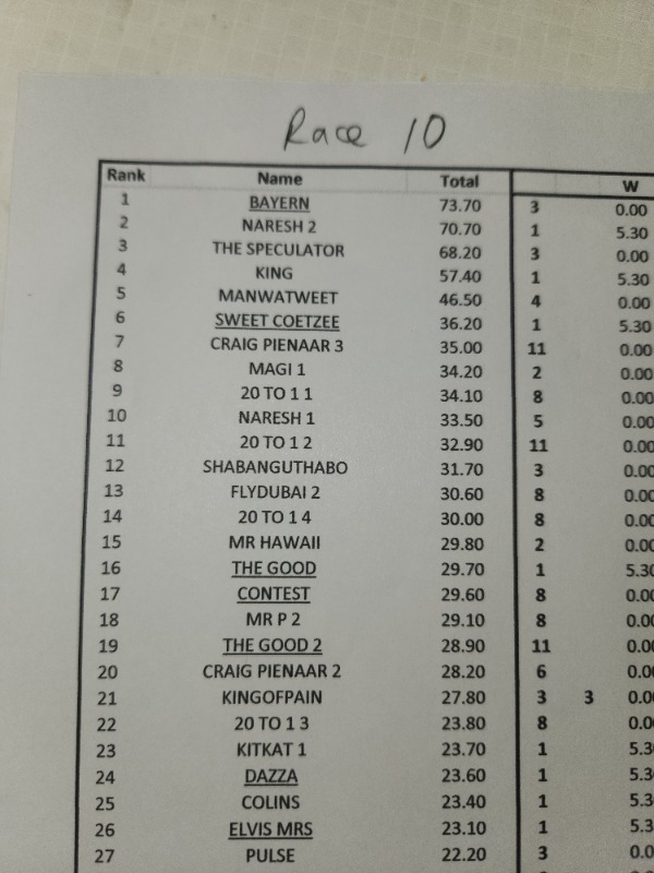 ONLY PAYS R 29.10 ON THE TOTE.......... A VERY STIIIIIF 4th there ZIETS....
