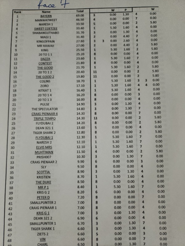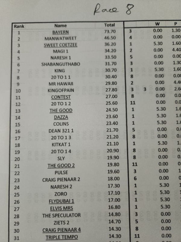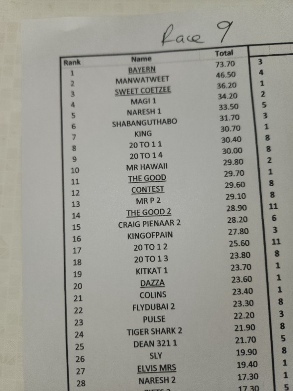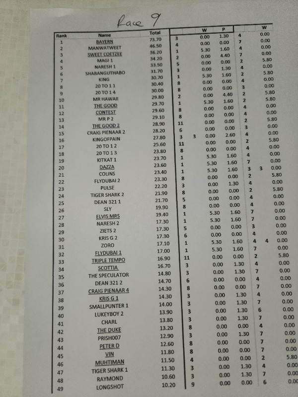 results after RACE 9...................... BAYERN........ u still got a goooood lead - 200m to go !